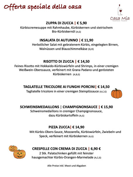Herzlich Willkommen in der Casa Mia! Wir bieten Ihnen frischen Fisch und Meeresfrüchte, sowie verschiedenste Pastavariationen und natürlich Pizza. Italienische Klassiker und Spezialitäten in bester Qualität. Wir freuen uns auf Ihren Besuch!