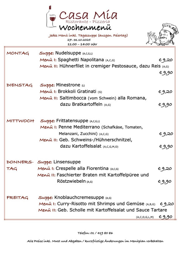 Mittagsmenü - Montag bis Freitag, werktags